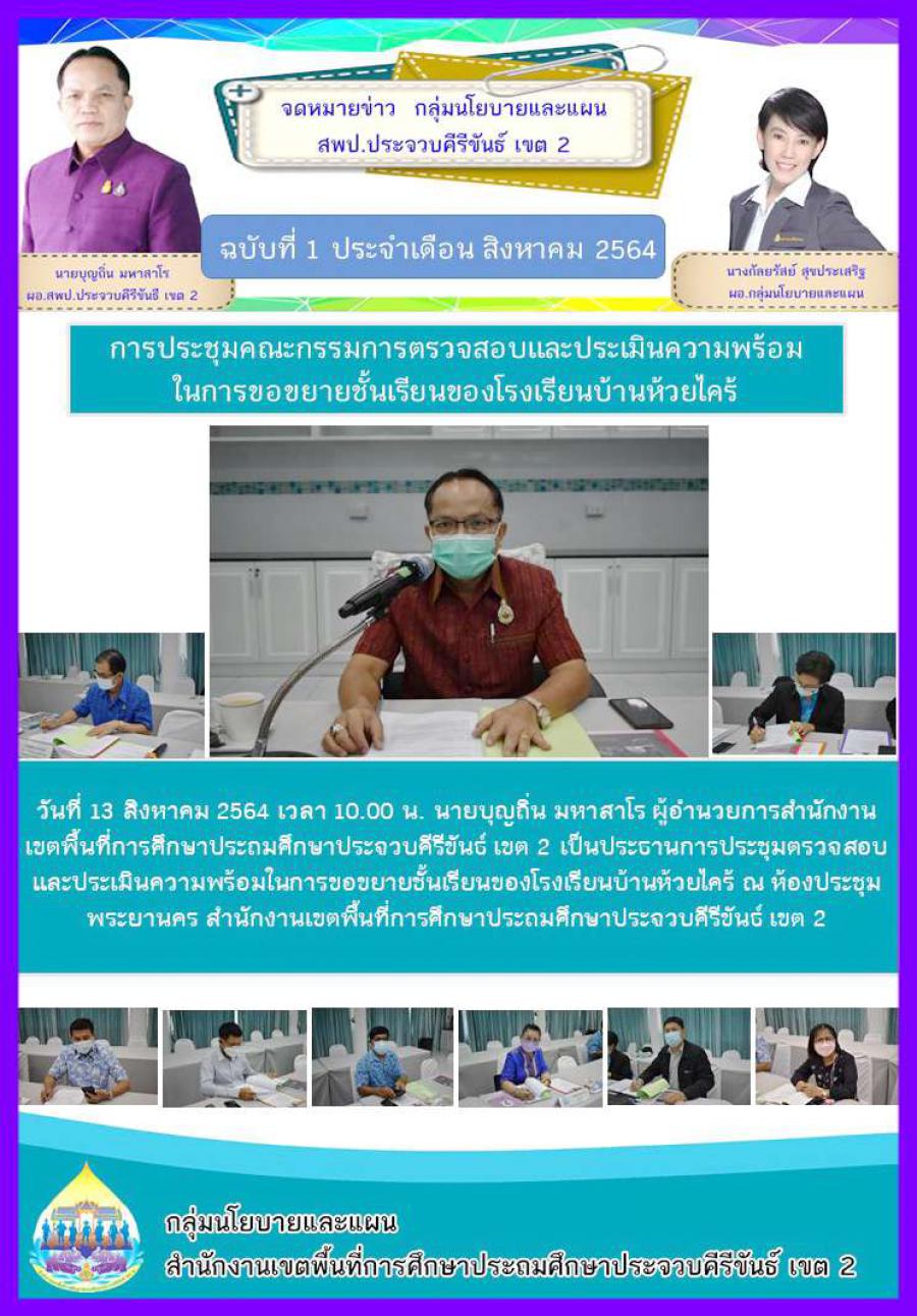 การประชุมคณะกรรมการตรวจสอบและประเมินความพร้อมในการขอขยายชั้นเรียนของโรงเรียนบ้านห้วยไคร้